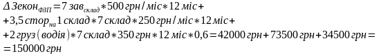 Згідно з даними табл. 3.5 при об'єднанні складів сумарні витрати зменшаться на 5,97 %, тобто за даними 2001 року (табл. Г.1 Додатку Г) на щорічну суму не менше: