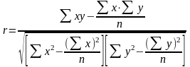 Коефіцієнт кореляції між двома рядами вібирок X,Y величин розраховується за формулою [10]:
