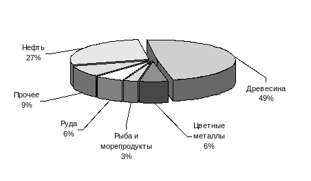 Рис.4. Структура экспорта СЭЗ "Находка" в 1999 г.,%
