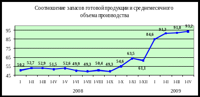 Рисунок 1.2 - Соотношение запасов готовой продукции и среднемесячного объема производства на промышленных предприятиях