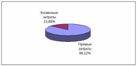 Рис. 17. Структура затрат предприятия с подразделением на прямые и косвенные затраты в 2005 году, %