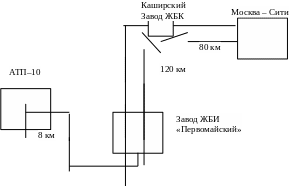 Рисунок В.1 – Схема движения автомашин по маршруту «Завод ЖБИ – Москва - Сити»