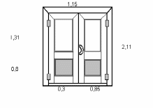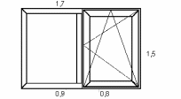 Рисунок 5. Окно 2-х створчатое с 1 открывающейся створкой, поворотно-откидное (габаритные размеры 1,5 х 1,7 = 2,55 кв. м)