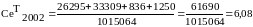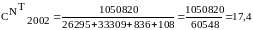 ΔСeT2002 = 6,08 – 6,22 = – 0,14 коп./грн.,