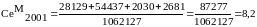 ΔСeЭ 2001= 8 – 8,1 = – 0,1 коп./грн.,