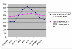 Таблица 6. Прогнозируемый объем продаж в 2008г. (м. кв)