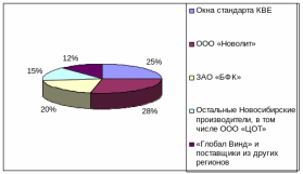 Рисунок 3.2 - Доля производителей окон из ПВХ на рынке г. Новосибирска в 2007 году
