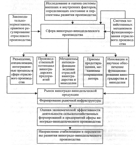 В настоящее время многие отраслевые регионы столкнулись с рядом проблем организационно-производственного и политического характера. При сложившейся ситуации развитие сферы виноградовинодельческого производства невозможно без государственного регулирования и контроля протекающих процессов в отраслях. Необходимо задействовать механизмы, непосредственно влияющие на формирование и развитие производственного потенциала виноградовинодельческих предприятий, функционирование отраслевого рынка, реализацию намеченной стратегии развития, укрепление и наращивание экспортного потенциала отечественного виноделия.