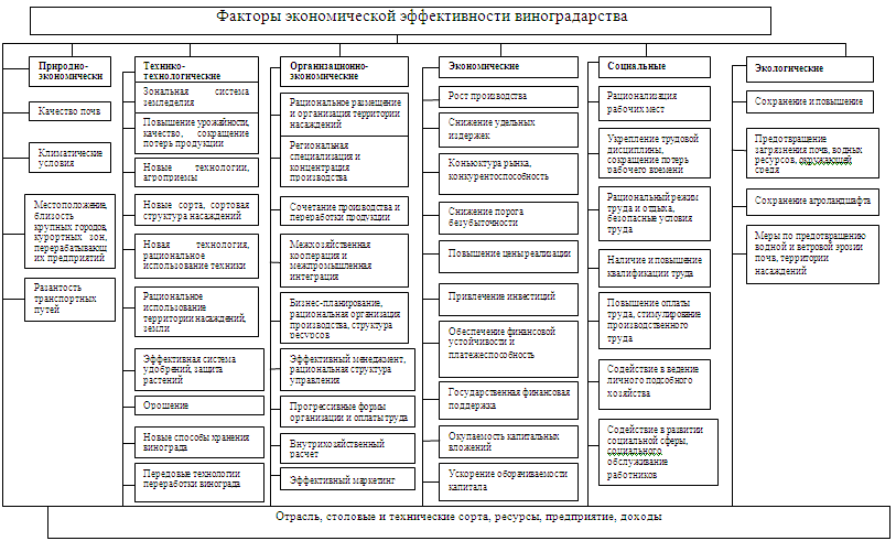 Рис. 3.4. Место организационно-экономических факторов в системе факторов эффективности виноградарства