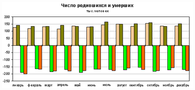 В январе 2009г. в России отмечалось снижение числа родившихся (в 62 субъектах Российской Федерации) и числа умерших (в 76 субъектах).