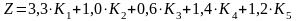 где показатели К1, К2, К3, К4, К5 рассчитываются по следующим алгоритмам: