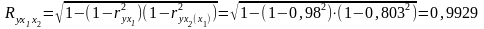 3) множинний коефіцієнт кореляції. Показує тісноту зв’язку між результативною ознакою і сукупністю факторних ознак: