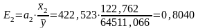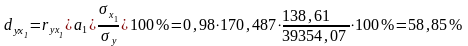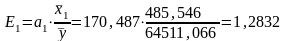 Отже, з даних коефіцієнтів ми побачимо, що із підвищенням кількості реалізованої продукції на 1 середнє квадратичне відхилення, виручка від реалізації молока збільшиться на 0,6005 середніх квадратичних відхилень. А із підвищенням ціни реалізації 1 тонни молока на 1 середнє квадратичне відхилення, виручка від реалізації збільшиться на 0,4077 середніх квадратичних відхилень.