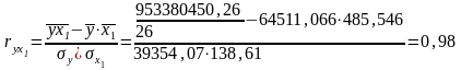 Отже, коефіцієнт становить 0,98, а це означає, що зв'язок прямий тісний.