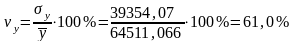 Отже, як ми бачимо варіація результативної ознаки та факторної ознаки становить 61,0% і 28,5%, а це більше за 10%, то варіація є достатньою.