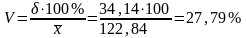Отже, коефіцієнт варіації становить 27,79 %, це свідчить, що тим менш однорідна сукупність, яка становить 29,84.