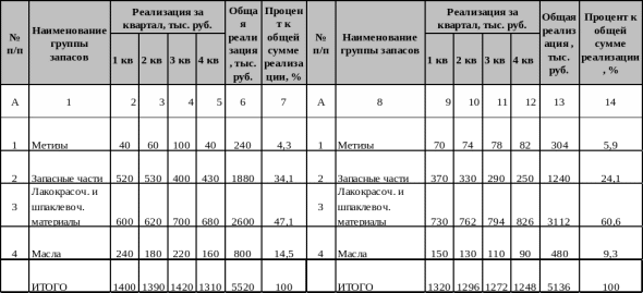Таблица 3.9 – Поквартальная реализация групп МПЗ на ОАО «КАТОН» РСМУ-10