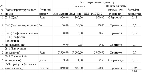 За нормативне експертне значення прийняті середні оцінки параметрів конкурентоспроможності по підприємствам галузі та світовим зразкам, які відповідають необхідному рівню якості та конкурентоспроможності.