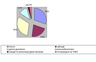 Та найменше фінансування поступає з державного бюджету , яке навпаки зменшилось у 2007 році на суму 121,4 тис.грн., і склало 183 тис.грн. Ці дані говорять про те, що на виконання кодів функціональної класифікації по пільгам, субсидіям та дитячим допомогам, потрібно набагато більше коштів, чим на утримання апарату управління , компенсацій внаслідок ЧАЕС та заходи по реалізації державних програм.