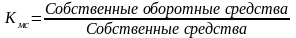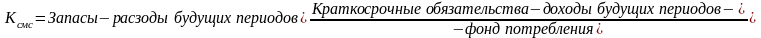 коэффициент соотношения материальных оборотных средств и текущих пассивов (Ксмс):
