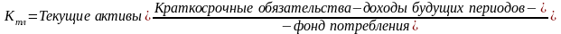коэффициент текущей ликвидности (текущее отношение) (Ктл) - показывает, в какой мере все текущие обязательства могут быть удовлетворены за счет текущих (оборотных активов):