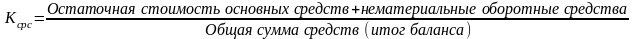 Коэффициент соотношения реальной стоимости основных средств и материальных оборотных с общей суммой средств, Ксрс.