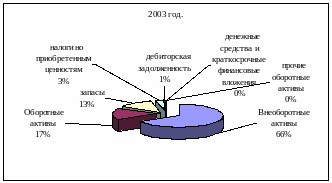 Данные табл. 2.3.1. показывают, что за анализируемый период (с2001 по 2003 гг.) общая сумма средств предприятия увеличилась до 14914 млн. руб. При этом средства между внеоборотными и оборотными активами распределены следующим образом: в 2001 г. внеоборотные активы составляли 70,8%, оборотные – 29,2%; в 2003г. это соотношение было: 80,11% и 19,89%-соответственно. Таким образом, на конец периода прирост внеоборотных активов составил 13994 млн. руб., а оборотных – 920 млн. руб. Не смотря на достаточно большой абсолютный прирост внеоборотных и оборотных активов, их структура изменилась незначительно. Следовательно, существенного перераспределения средств не произошло.