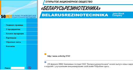 Рисунок 6. Главная страница сайта ОАО «Беларусьрезинотехника»