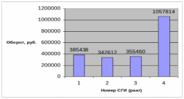 | Ранг | Наименование СГИ | Относительная доля в обороте предприятия,% | Оборот, руб. | Рынки СГИ |