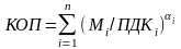 Значения КОП рассчитываются при условии, когда М / ПДК; > 1, при Мi / ПДКi < 1 КОП не рассчитываются и приравниваются к нулю.