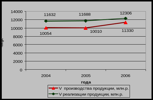 Для большей наглядности эту динамику производства и реализации продукции изобразим графически (рис.2.1).