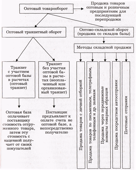 Результатом этих форм продажи будет являться оптовый транзитный оборот и соответственно оптовый складской товарооборот. В оптовом товарообороте торговых баз преобладающий удельный вес приходится на оптово-складской товарооборот. Транзитный оборот оптовых баз, в свою очередь, подразделяется на оборот с участием в расчетах (оплаченный или с вложением базой собственных средств) и без участия в расчетах неоплаченный, организуемый).