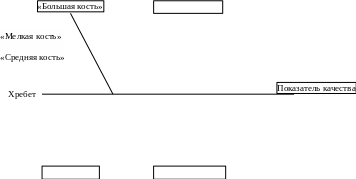 При анализе дефектов пользуются условными графическими моделями причинно-следственных связей (отношений) факторов, известными под названиями: ветвистой схемы характерных факторов, причинно-следственной диаграммы (диаграммы Исикавы). Если в этой диаграмме (рис. 11) выделить "хребет", большие, средние и мелкие "кости", она становится похожей на рыбий скелет и ее часто именуют поэтому "рыбьей костью" или "рыбьим скелетом". Причинно-следственная диаграмма (ПС-диаграмма) включена в японский промышленный стандарт (JIS) в области контроля качества как диаграмма, показывающая отношение между показателем качества и воздействующими на него факторами.
