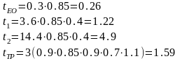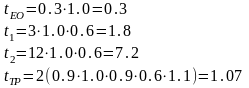 | Скорректированные трудоемкости, чел.ч: ЕО ТО-1 ТО-2 ТР | 0.5 2 7,5 2 | 0,3 1,8 7,2 1,07 | 0,26 1,22 4,9 1,59 |