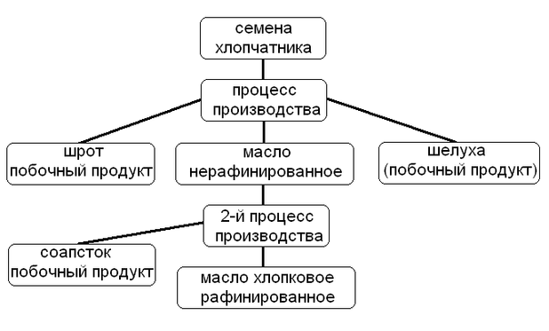 Рис. 2.1 Процесс движения основных затрат в виде основного сырья при производстве хлопкового масла.