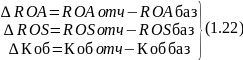 Сразу рассчитывается абсолютное изменение коэффициента рентабельности совокупных активов и факторных показателей (1.22):