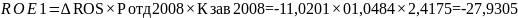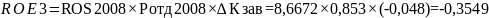 Сложив значения изменений за счет каждого фактора, получим общее изменение значения коэффициента рентабельности собственного капитала: