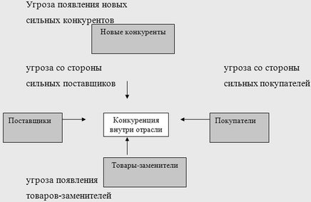Четверть века назад, профессором М. Портером была предложена модель сегментации рыночных сил конкуренции. Это силы, которые могут угрожать нашей организации или которые мы можем использовать с выгодой для себя. Модель М. Портера прошла испытание временем, благодаря своей простоте (см. рис. 1).