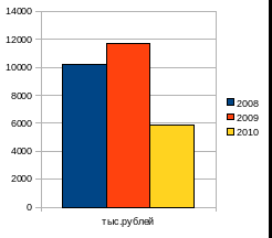Как видно, общий объем финансирования мероприятий на 2010 год составляет– 5900,0 тыс. рублей. Это на 5875 тыс. руб. меньше, чем в 2009 году и на 4360 тыс. руб. меньше, чем в 2008 году. Это связано, прежде всего, с кризисным состоянием экономики нашей страны.