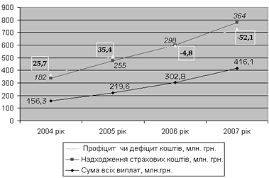 На попередніх таблицях зображена динаміка діяльності управління виконавчої дирекції Фонду в Дніпропетровській області за останні чотири роки. Порівнюючи суми надходжень з сумами видатків, можливо зробити висновки про самозабезпеченість Фонду на теперішній час.