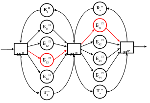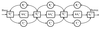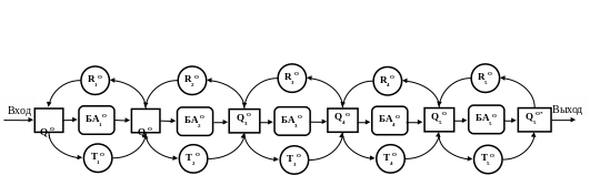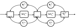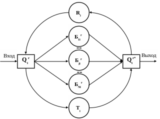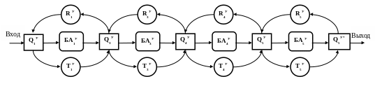 Показатель Qir* может принимать одно из множества значений {Бjir}, совокупность которых представляет альтернативные вершины блока БАС. Также в ЭБА имеются Т – транзитная вершина, и R – рекурсивная вершина.