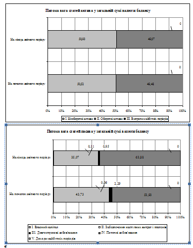 Рисунок 2.1 - Питома вага окремих статей у загальній сумі валюти балансу і оцінка змін питомої ваги