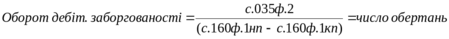 Коефіцієнт обертання дебіторської заборгованості (1.3.7) визначається відношенням доходів від продажів (величини реалізації без обліку ПДВ і акцизів) до середньої величини дебіторської заборгованості, визначеної як середньоарифметична величина між сальдо по дебіторах на початок і кінець звітного періоду.