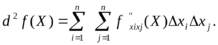 Як і у випадку одна перемінної, необхідне умова не є достатнім для того, щоб стаціонарна точка була точкою екстремуму. Для одержання достатніх умов варто визначити в стаціонарній точці знак диференціала другого порядку. Диференціал другого порядку позначається d2 f (x1, x2,…,xn)і дорівнює сумі добутків часток похідних другого порядку на відповідні збільшення аргументів. Якщо від частинної похідної