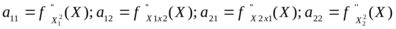 Знайдемо значення часток похідних другого порядку в стаціонарній точці Х0(х01,х02):