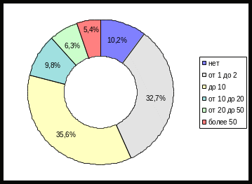 Большинство из опрошенных организаций (68,3%) имеет парк компьютеров до 10 единиц (рисунок 1)