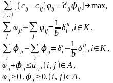 - попит і пропозиції для первинного і повторного потоків Ks+I, Ks-I, Ks+II і Ks-II - джерела і стоки для первинного і повторного потоків відповідно, а також обмежень на пропускну спроможність дуг