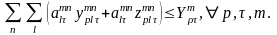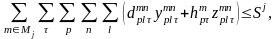 при виконанні обмежень (59)-(61), (64), (65), специфічних для даної групи транспортних засобів, а також заданих другим рівнем обмежень на загальні обсяги перевезень вантажів власними, арендованими і що здаються в аренду транспортними засобами
