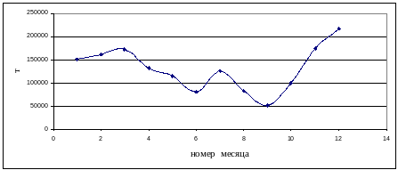 Анализ статистических данных показал, что величина потребления угля каждый месяц различна и носит случайный, но циклический характер. Этот факт указывает на то, что для расчета оптимального запаса продукции необходимо использовать стохастическую модель управления запасами.