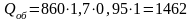 Qр = 86* 1.15 * 10 = 990 ккал / година
